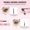 Diseño de doble punta, pegamento negro en un extremo, impermeable transparente para pestañas en un extremo. En el primer paso, cepilla el pegamento para pestañas sobre las pestañas.